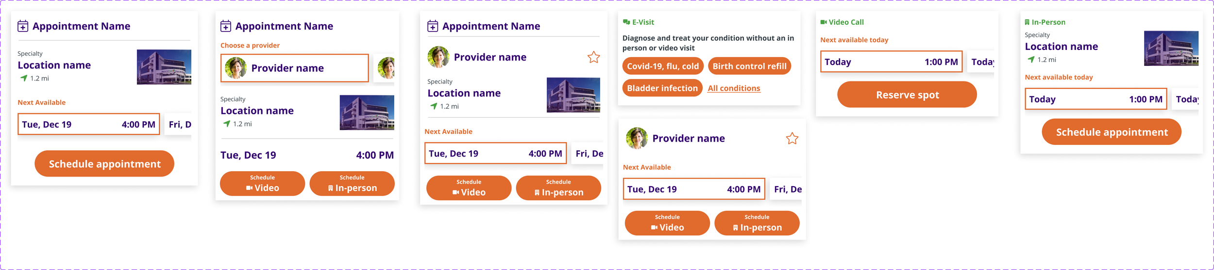 When it came time to design the screens, I had everything necessary to create a robust, reusable Appointment card component, and the development team had the foundational understanding for why an “upcoming appointment” looked different from a “past appointment”, which looked different from an “available appointment slot”. All because we met and got aligned together from the start.